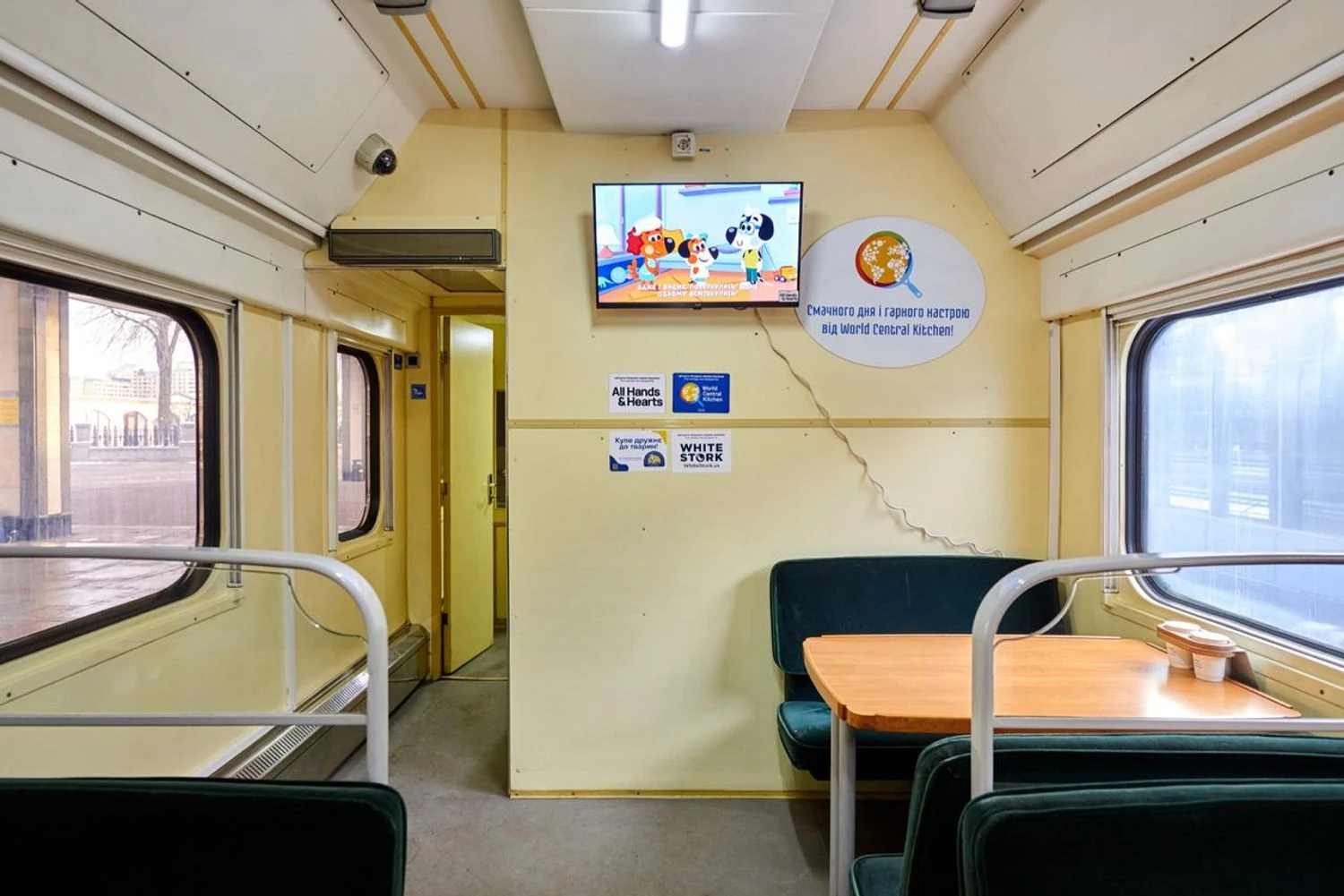 крзалізниця за допомогою партнерів – All Hands & Hearts, World Central Kitchen, Hachiko Foundation, White Stork – обладнала 100 своїх вагонів як тимчасові мобільні пункти обігріву, зв’язку та дозвілля. Вагони мають повноцінну систему опалення і здатні підтримувати комфортну температуру за будь-яких погодних умов, оснащені зарядними пристроями від генераторів та портативних джерел живлення, мікрохвильовками для розігріву їжі та холодильниками для її тимчасового зберігання, а також комплектами Starlink для безперебійного зв’язку.