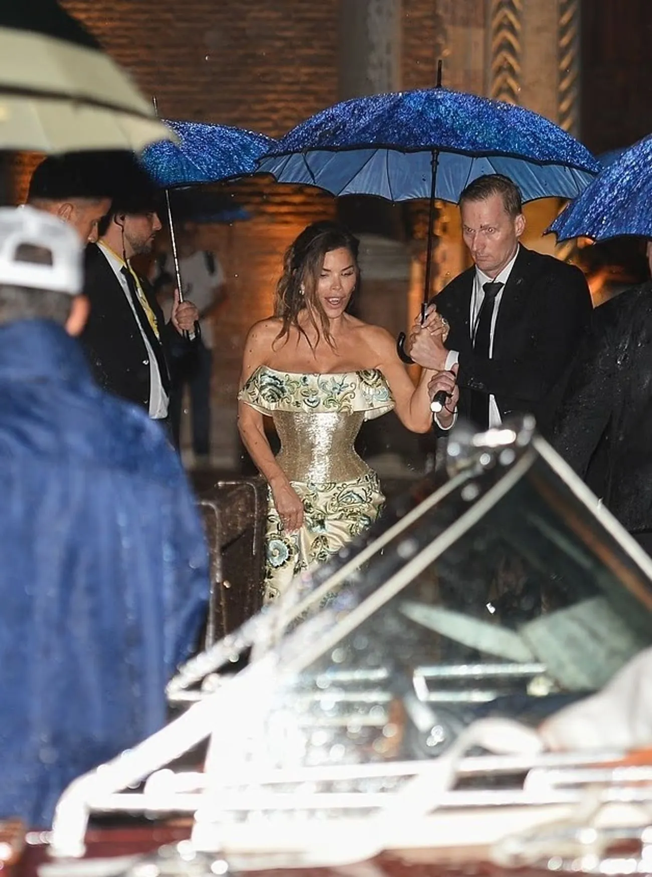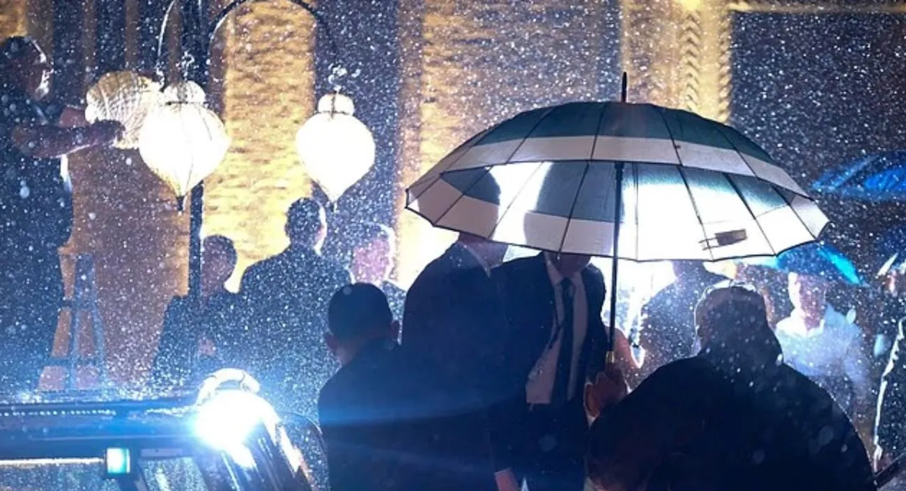 Гості ховалися від блискавок та грому, а потім кинулися на водні таксі, які викликали за 45 хвилин до опівночі. Сильні пориви вітру зривали скатертини та змушували офіціантів бігти за парасольками, щоб захистити VIP-гостей.