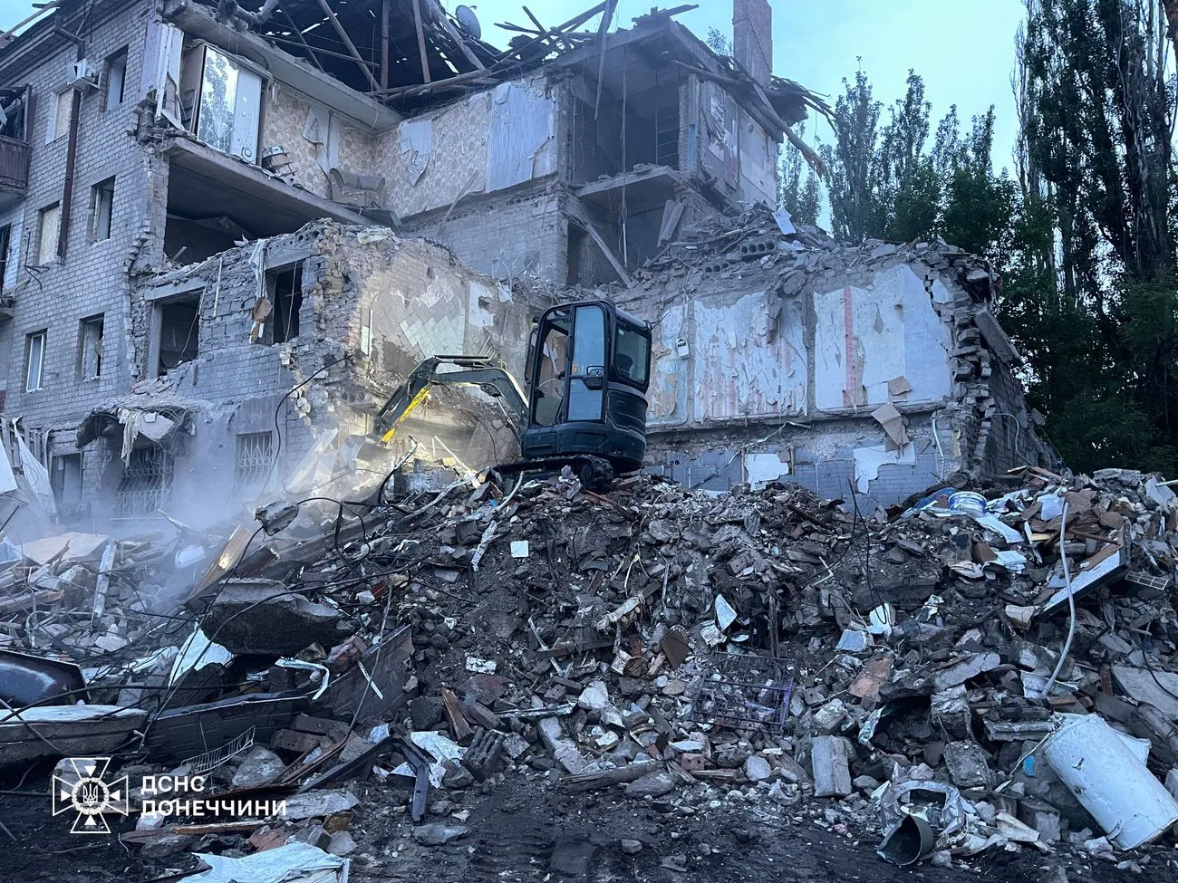У Краматорську триває рятувальна операція після авіаудару російської армії, що зруйнував частину житлового будинку. Відомо про чотирьох загиблих та чотирьох поранених, 230 тонн зруйнованих конструкцій вже розібрано.