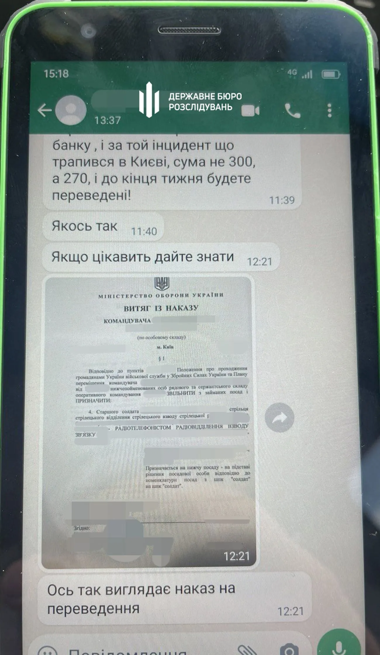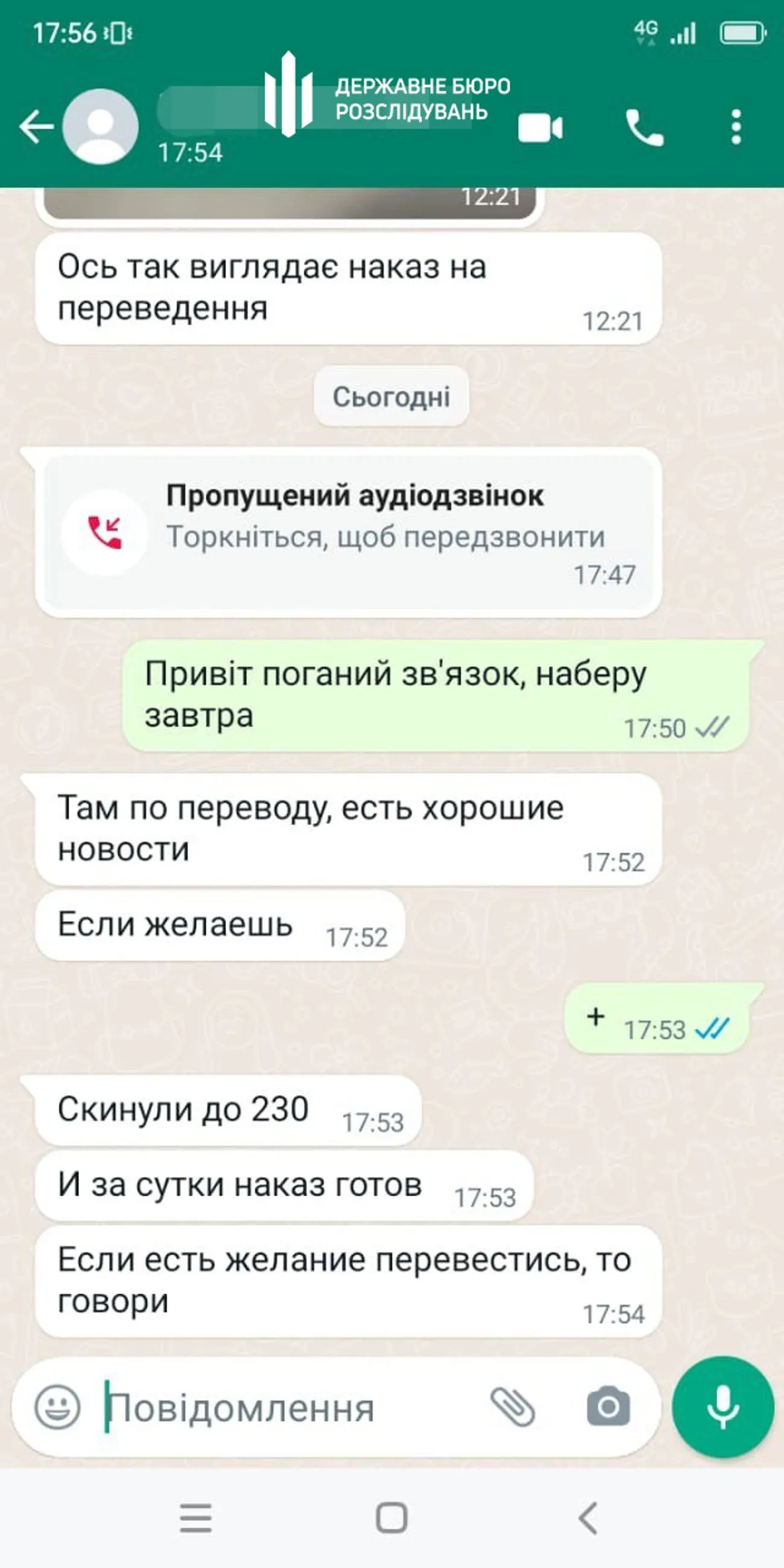 Крім того, ДБР повідомило про підозру (ч. 1 ст. 369-2 Кримінального кодексу України) чотирьом військовослужбовцям, які за гроші скористались цією схемою та "вирішили питання" про переведення до тилових військових частин.