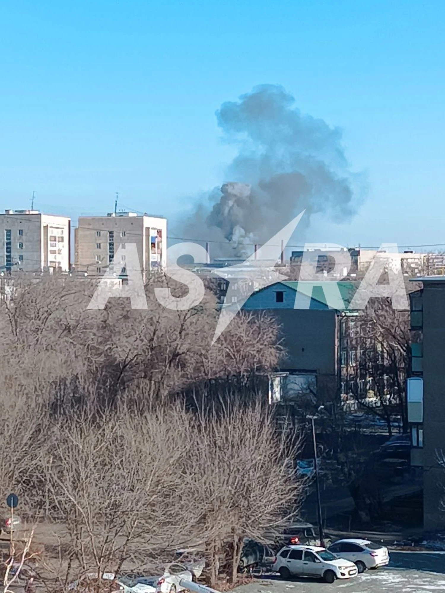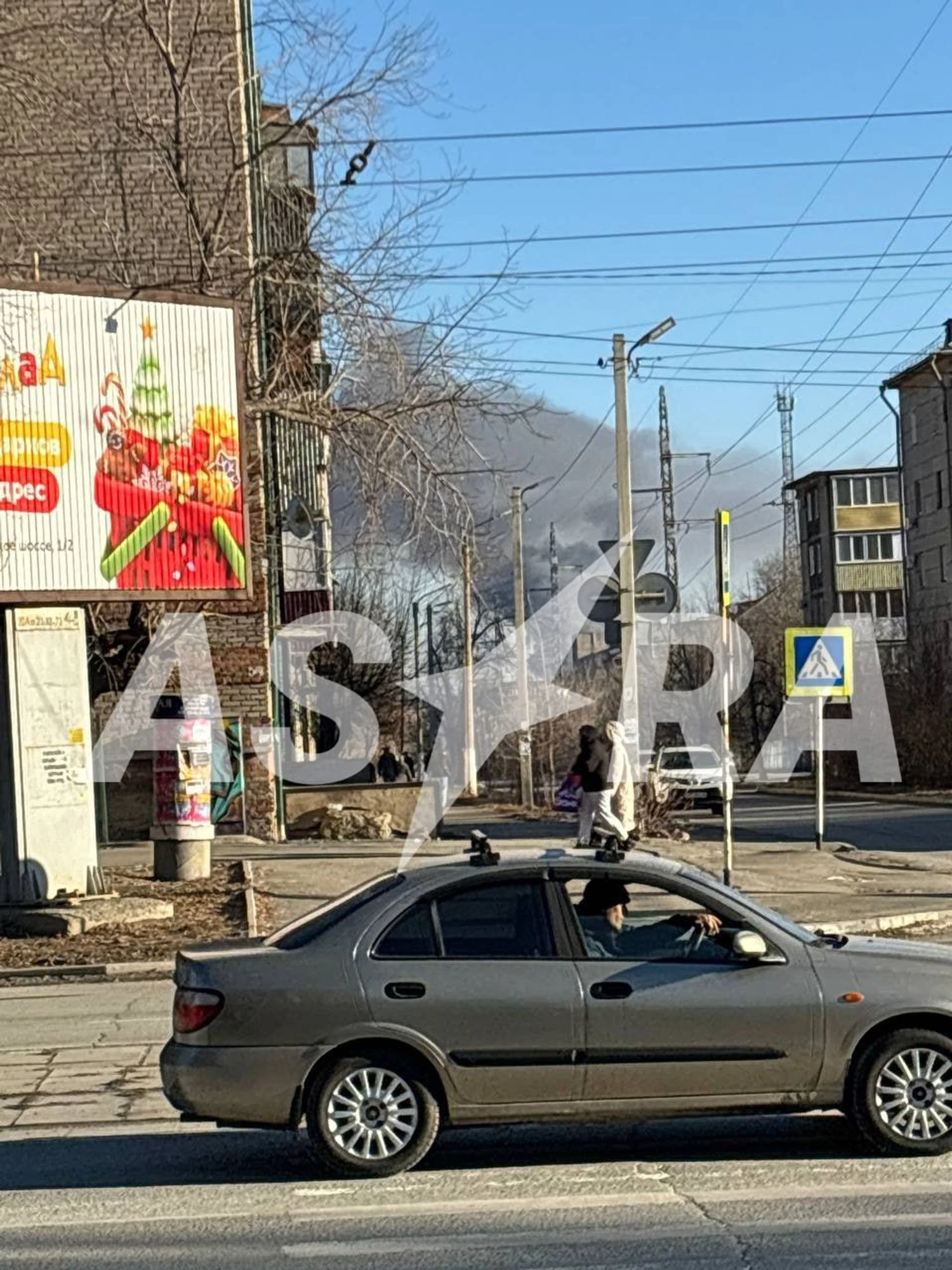 Над містом піднявся великий стовп чорного диму. За словами місцевих жителів, загорівся механічний завод.