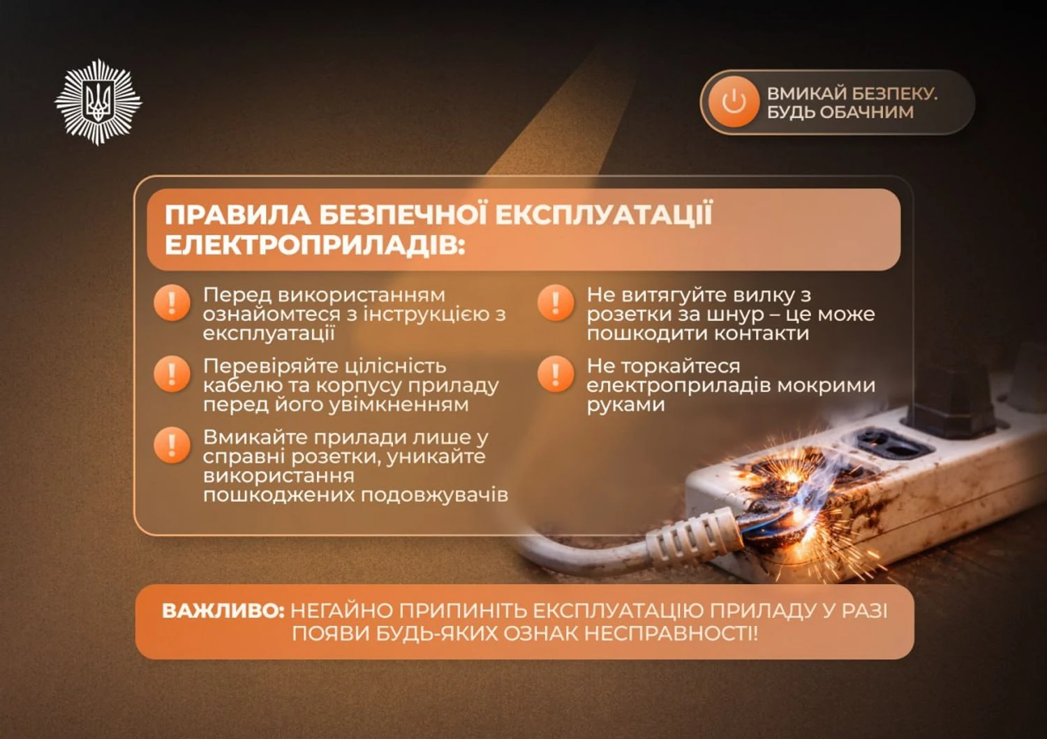 У разі виявлення хоча б однієї з цих ознак громадянам радять негайно припинити користування приладом та не намагатися ремонтувати його самостійно.