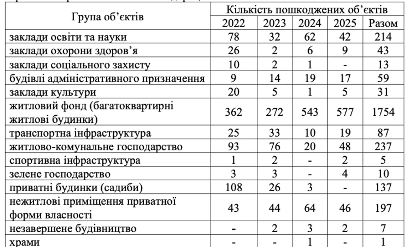 Загалом з 2022 року в столиці пошкоджено 1754 багатоквартирні будинки та 214 закладів освіти.