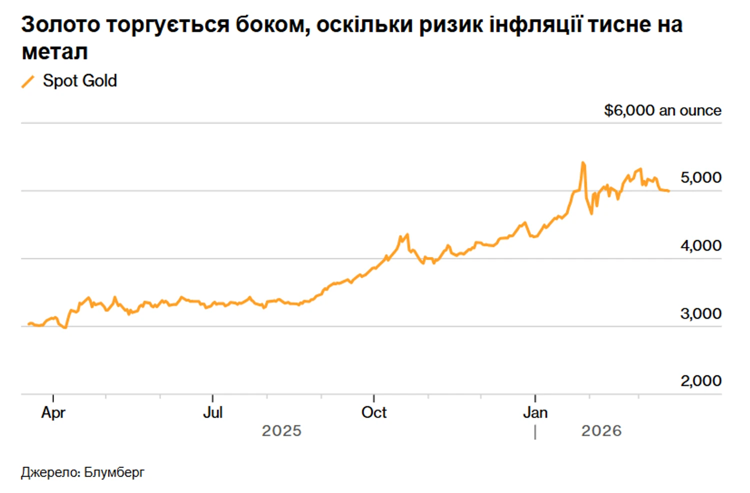 Спотова ціна на золото знизилася на 0,1% до 5 001,61 долара за унцію о 6:50 ранку в Сінгапурі. Срібло знизилося на 0,3% до 79,03 долара. Платина та паладій подешевшали. Спотовий індекс долара Bloomberg знизився на 0,1% після втрати 0,2% на попередній сесії.
