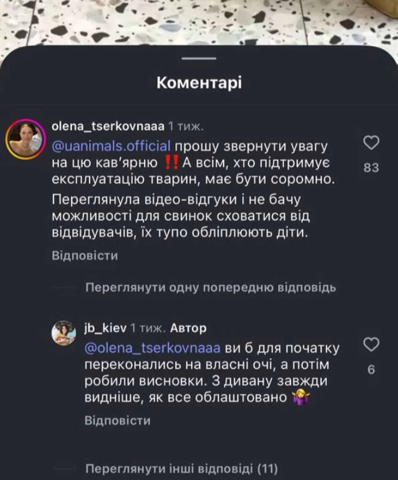 Всім хто підтримує експлуатацію тварин, має бути соромно. Переглянула відео-відгуки і не бачу можливості для свинок сховатися від відвідувачів, їх тупо обліплюють діти