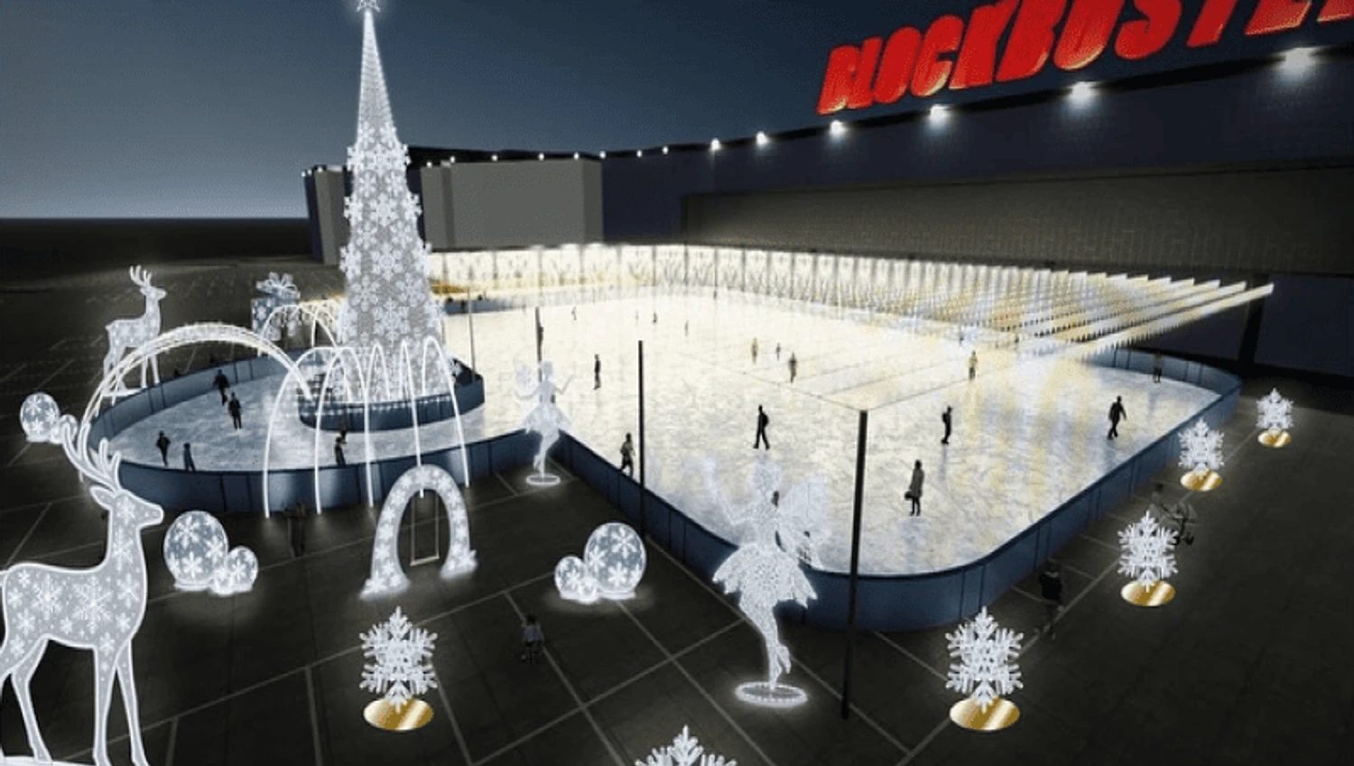 Просто неба біля ТРЦ Blockbuster Mall розкинулася ковзанка площею 3200 кв.м. Це найбільша ковзанка столиці.
