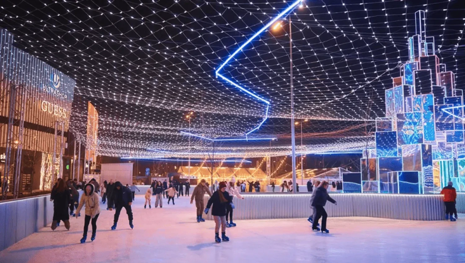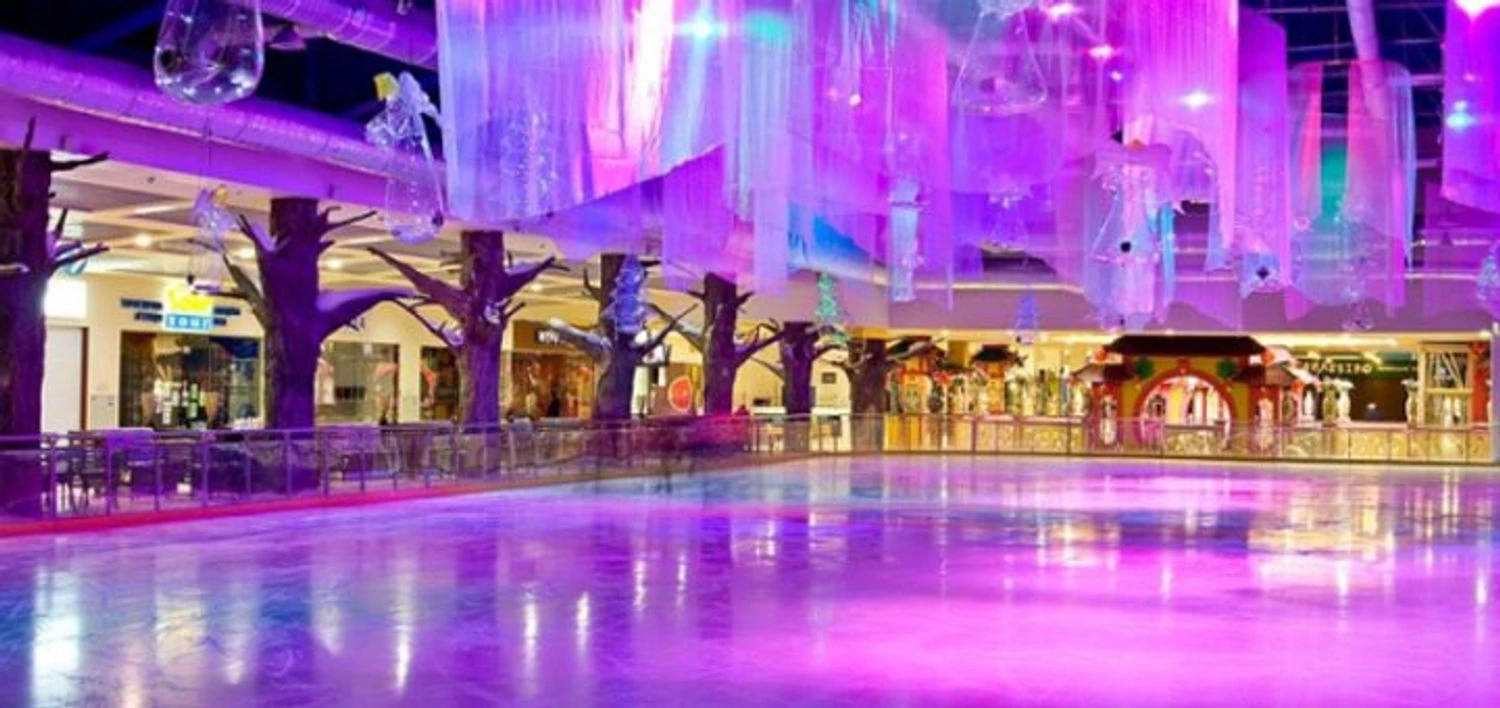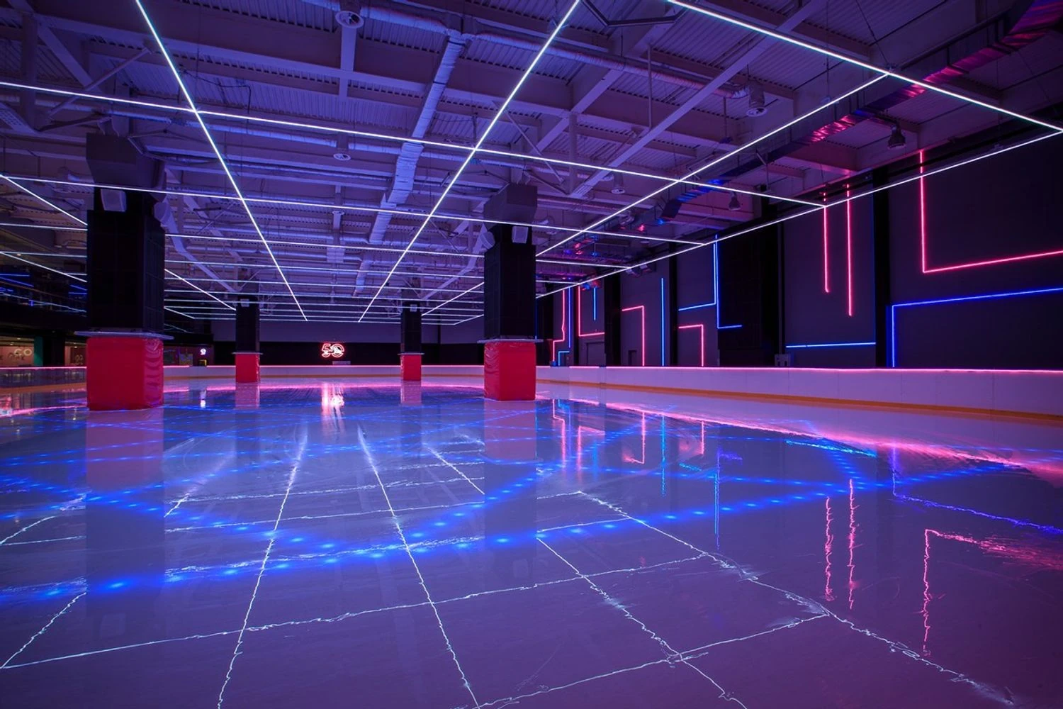 Футуристична ковзанка площею 2000 кв.м може вміщувати до 240 відвідувачів. Арена підсвічується неоновим світлом, що створює особливу атмосферу.