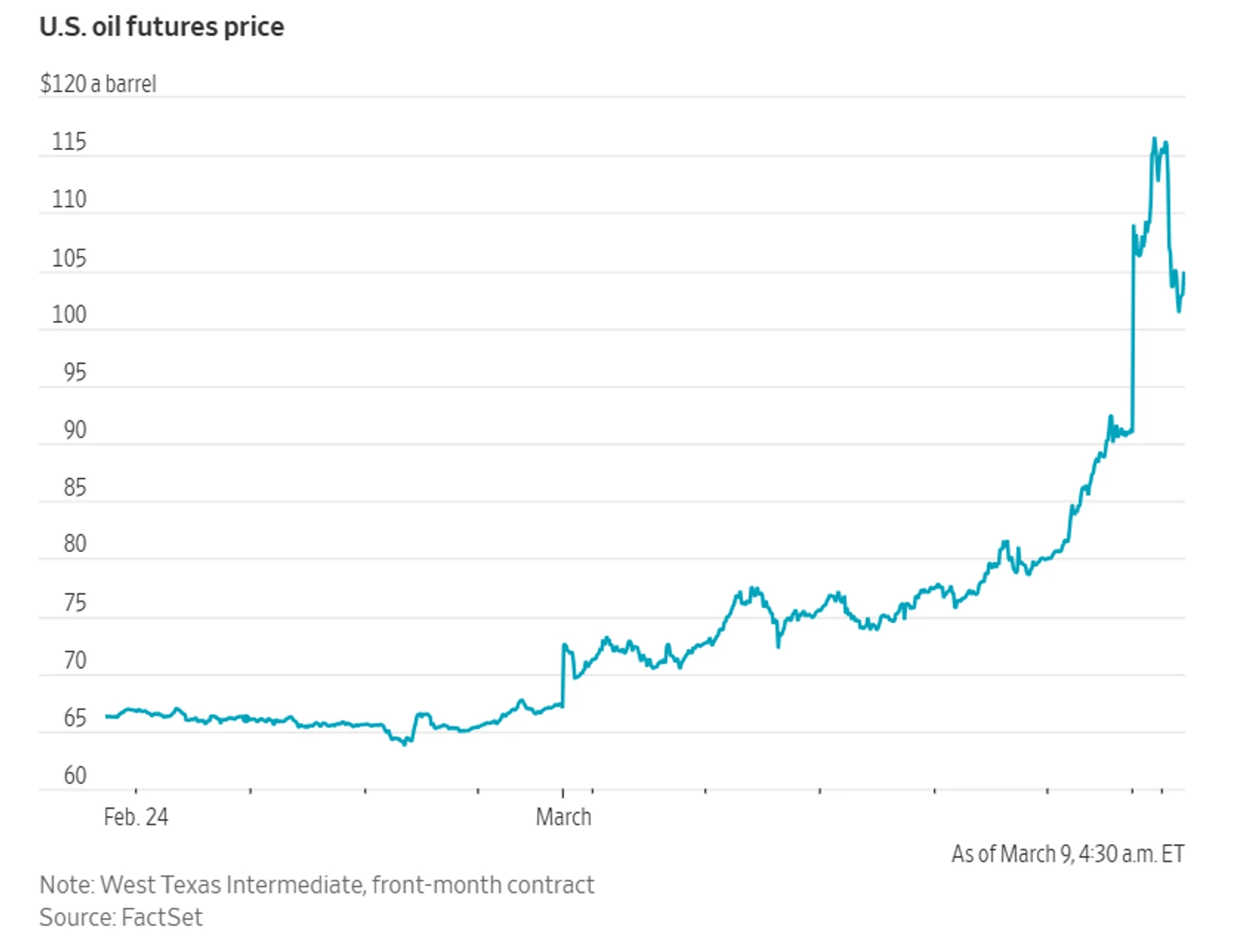 Мировые энергетические рынки зафиксировали рекордный недельный рост цен на нефть, который в воскресенье вечером достиг отметки в 100 долларов за баррель. Фьючерсы на американскую нефть West Texas Intermediate продемонстрировали стремительный скачок на 20%, что стало самым масштабным показателем со времен энергетического кризиса 2022 года, спровоцированного войной в Европе. Об этом сообщает The Wall Street Journal, пишет УНН.
