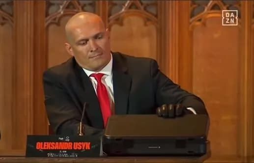 Украинский боксер Александр Усик пришел на пресс-конференцию с Тайсоном Фьюри в костюме Агента 47 из игры «Хитман». Он вышел под саундтрек игры и принес чемодан с плакатами для подписи Фьюри.
