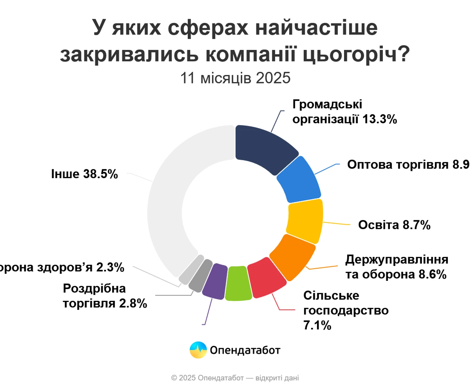 За 11 месяцев 2025 года с карты Украины исчезло более 11 тысяч компаний. Чаще всего деятельность прекращали в Киеве, на Днепропетровщине и Львовщине, а наиболее уязвимыми оказались общественные организации. Об этом сообщает Опендатабот, пишет УНН.