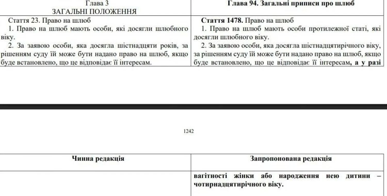 Шквал эмоций и возмущений вызвал законопроект №14394, зарегистрированный 22 января 2026 года. Он предлагал в новом Гражданском кодексе разрешить суду в исключительных случаях предоставлять право на брак с 14 лет, если несовершеннолетняя беременна или уже родила ребенка. Однако Председатель Верховной Рады Руслан Стефанчук сообщил: после дискуссий поправку из законопроекта изъяли.