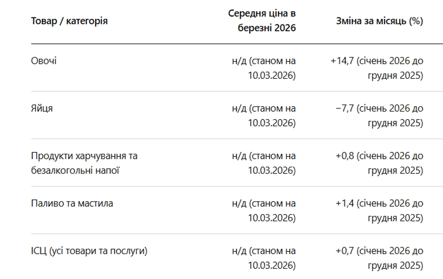 Как изменились цены на продукты в Украине по состоянию на март 2026: официальная статистика