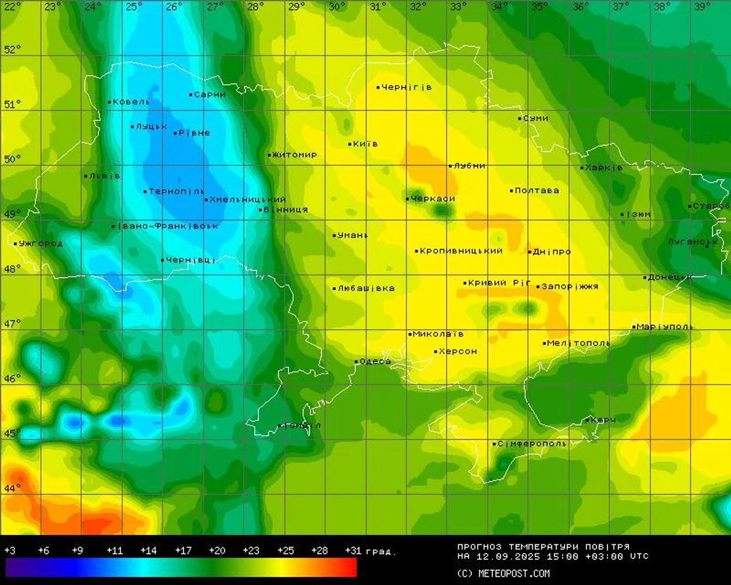 12 сентября дожди пройдут в западных областях Украины, заблокированные антициклоном. Температура воздуха распределится интересно, от +16°C на западе до +28°C на юге и востоке.