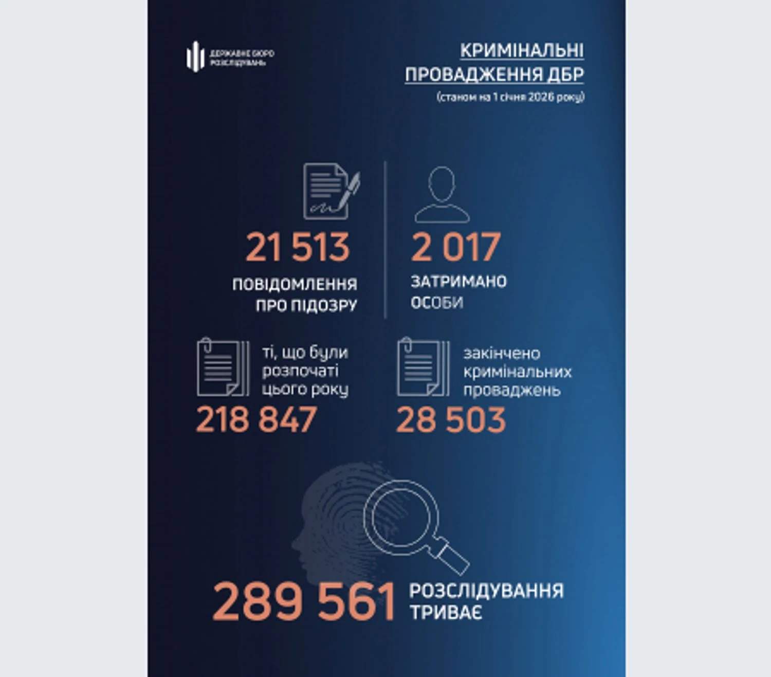 В 2025 году ГБР направило в суд более 7 тыс. обвинительных актов в отношении 7,9 тыс. человек, сообщило о подозрении 21,5 тыс. фигурантам и задержало 2 тыс. человек. Об этом сообщает Государственное бюро расследований, пишет УНН.
