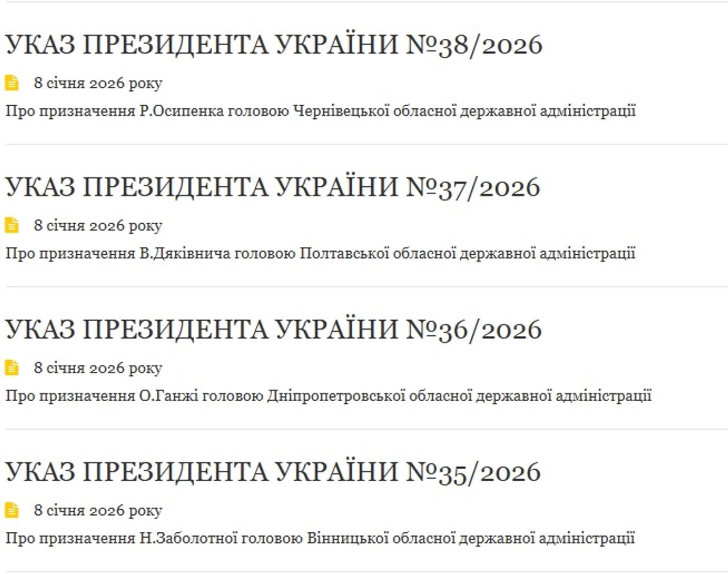 Согласно указам №35-38, Зеленский назначил