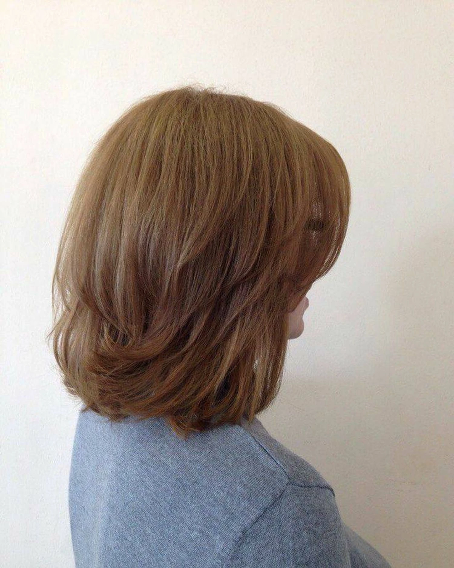 Сочетание челки и слоев делает образ еще более молодежным и стильным.