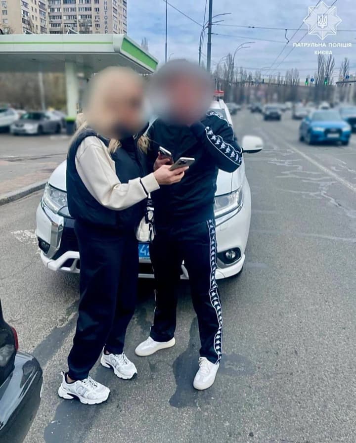 В Киеве полиция остановила Александра Алиева за нарушение ПДД. Он ругался с патрульными, отказался от проверки на опьянение, а его пассажирка залезла на служебное авто.