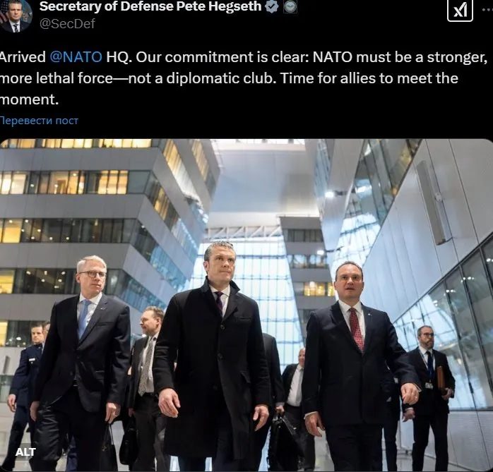 Пит Гегсет 12 февраля, прибыл в штаб-квартиру НАТО в Бельгии.