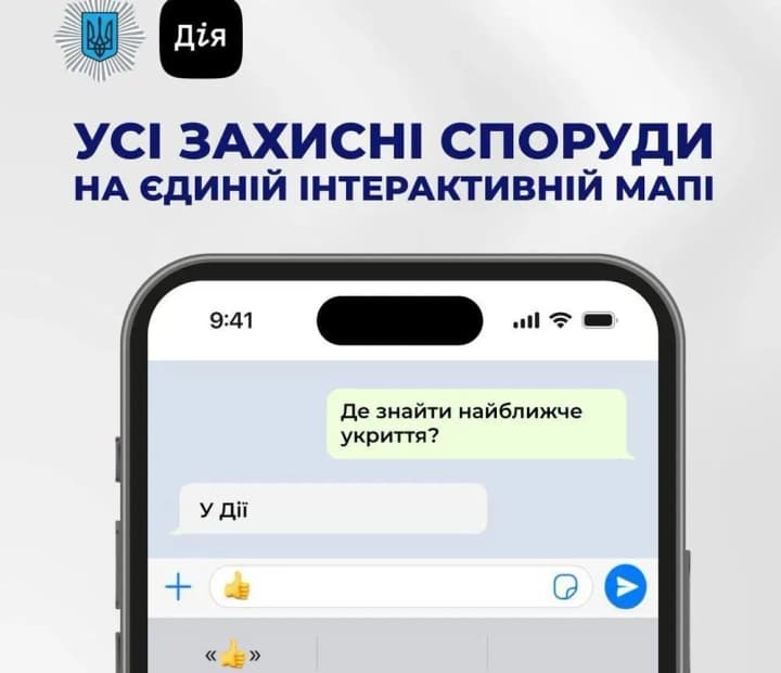Приложение "Дія" теперь отображает карту и информацию о ближайших бомбоубежищах, чтобы помочь гражданам быстро найти безопасность во время терактов.