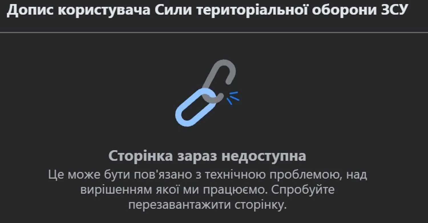 19 ноября официальный сайт Сил территориальной обороны ВСУ был взломан. Там заявили, что опубликованная информация не соответствует действительности. Сейчас ведутся работы по восстановлению работы сайта.