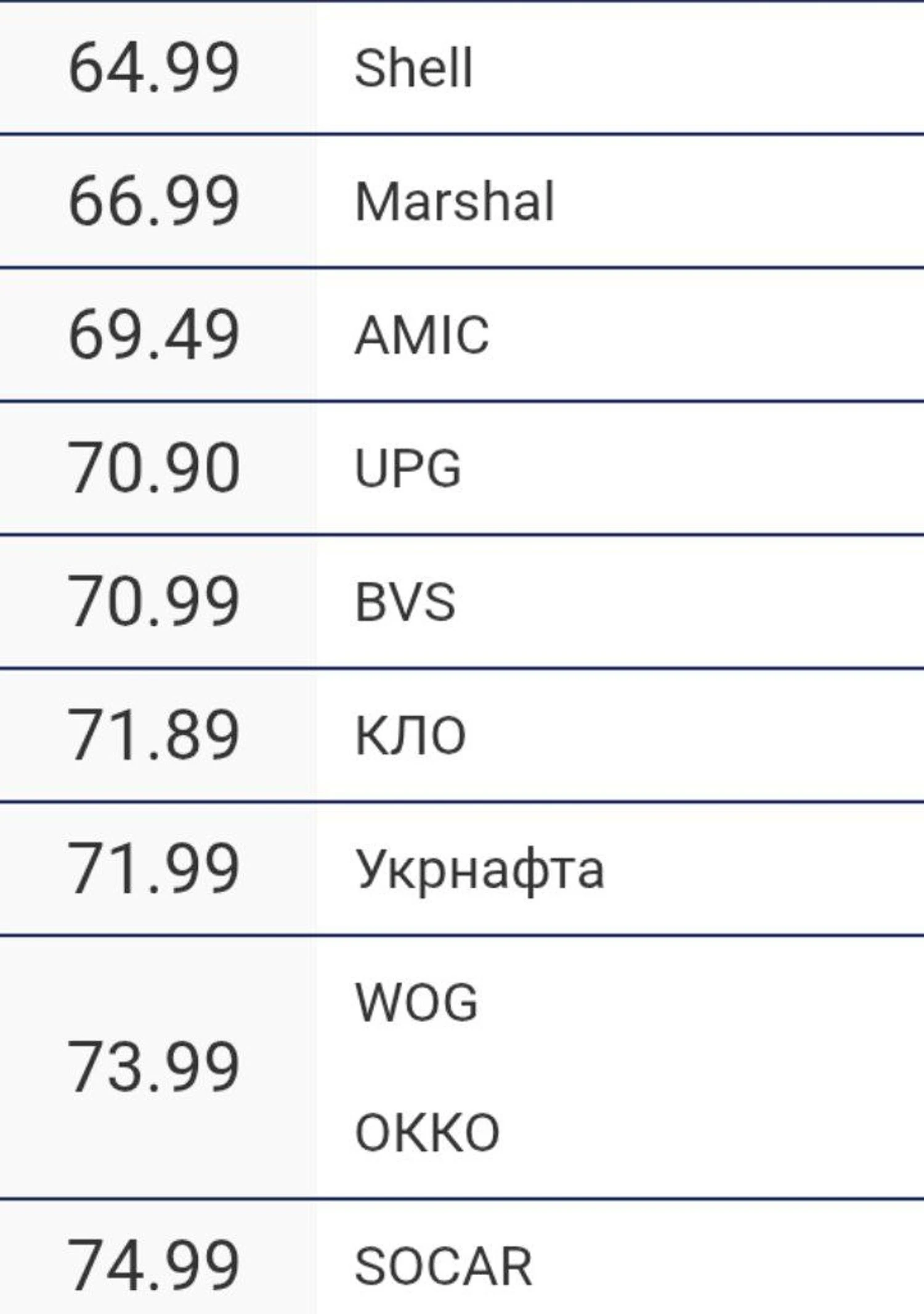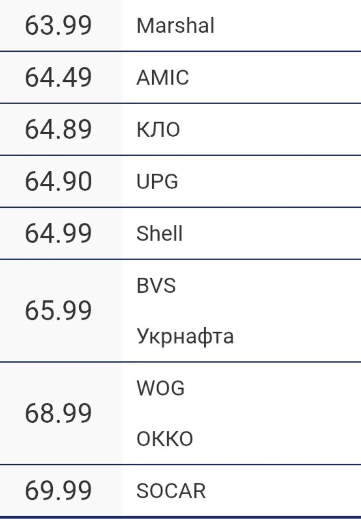 - WOG: 65.99 → 68.99 (+3.00 грн, +4.55%).