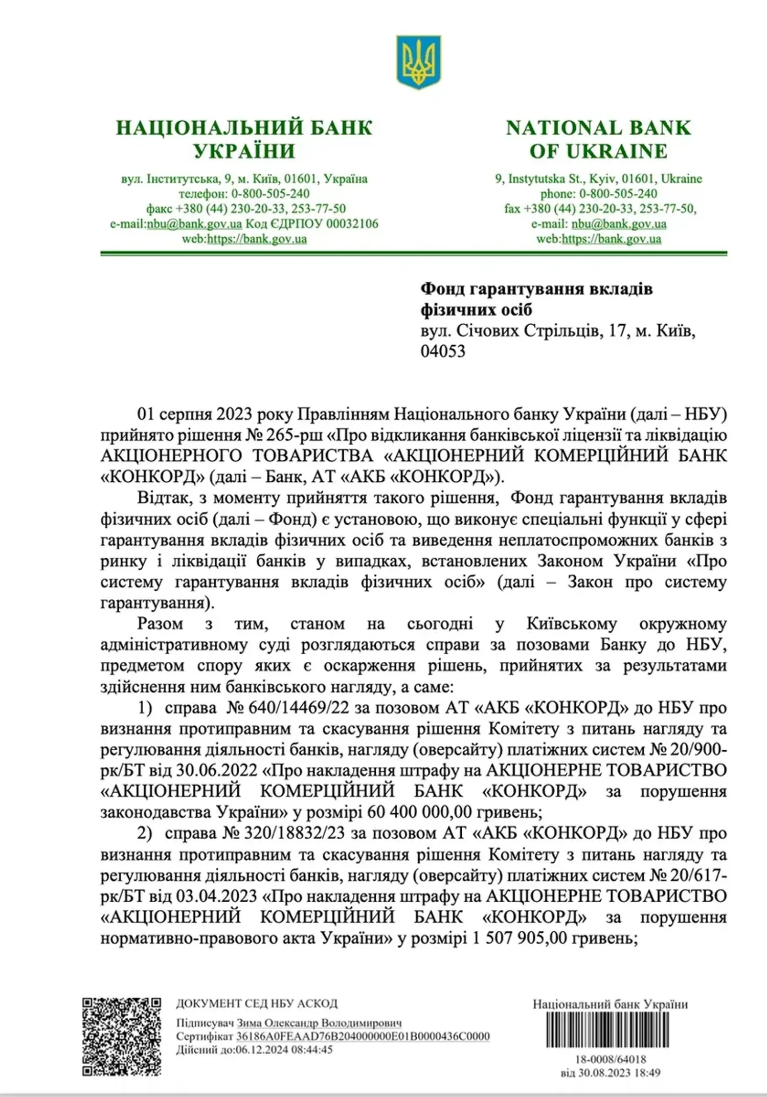 Позже расследование уголовного производства передали Печерскому управлению полиции в городе Киев, следователи которого признали соучредительниц "Конкорда" Елену и Юлию Соседок потерпевшими. По мнению юристов, таким образом следствие подтвердило, что действия Александра Зимы нанесли реальный существенный ущерб акционерам банка.