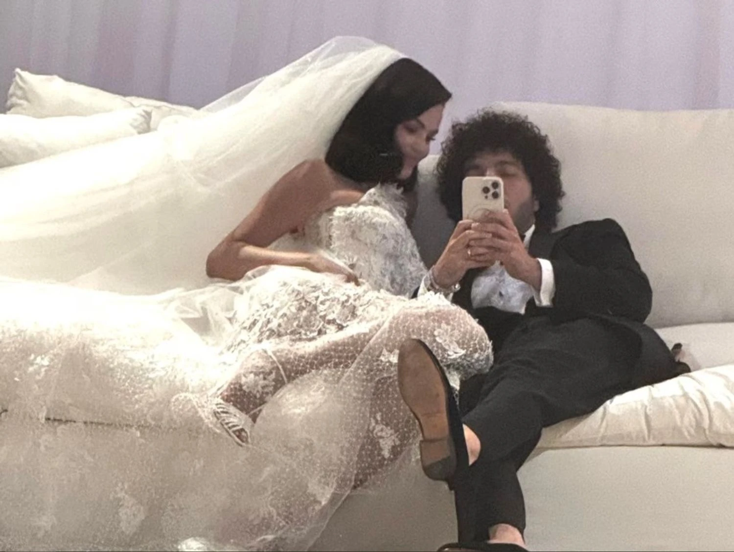 Селена Гомес удивила всех, надев четыре белых платья от Ralph Lauren, тогда как Бенни Бланко выбрал элегантный и сдержанный образ. В тот же день пара поделилась серией фотографий в Instagram.