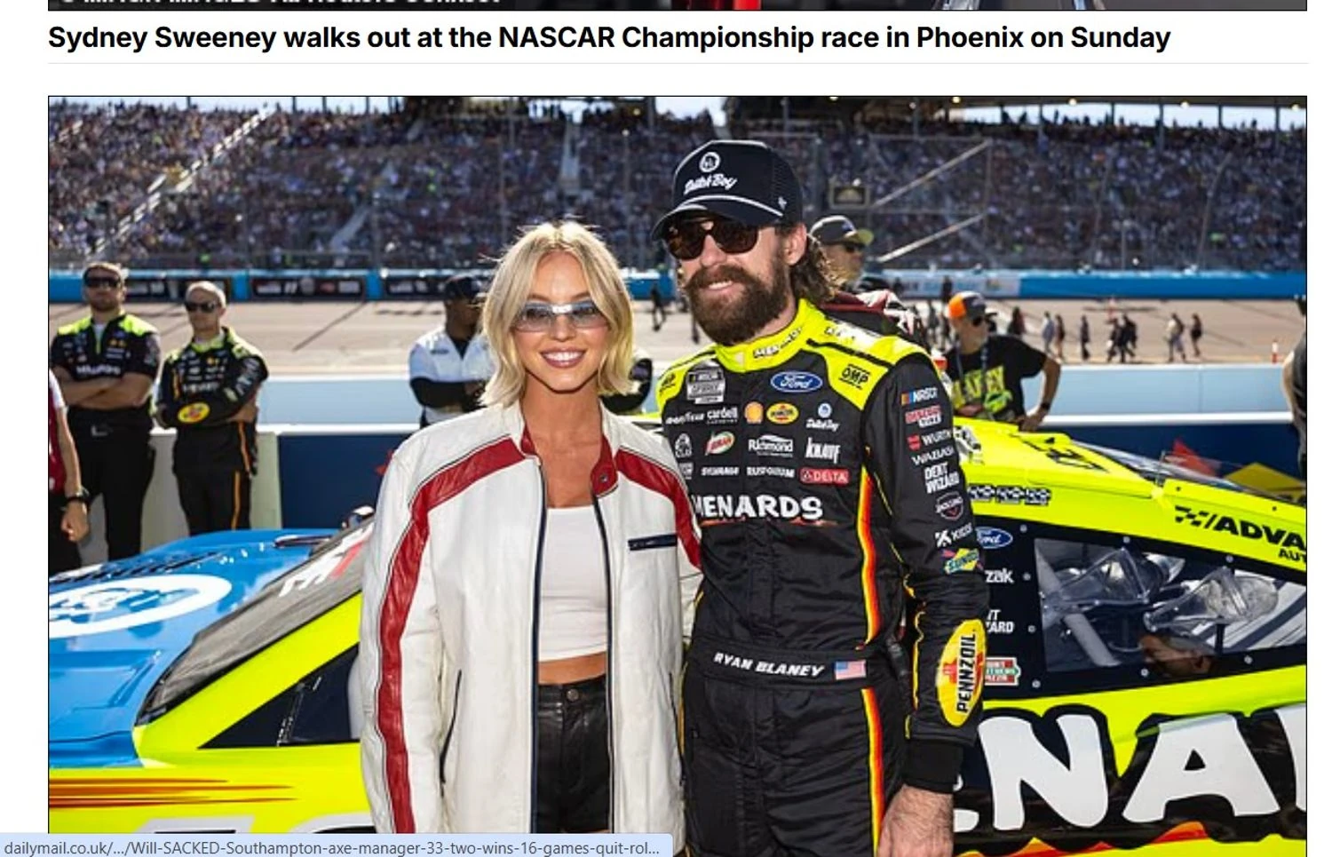 Сидни Суини появилась на гонках NASCAR после ссоры с экс-женихом