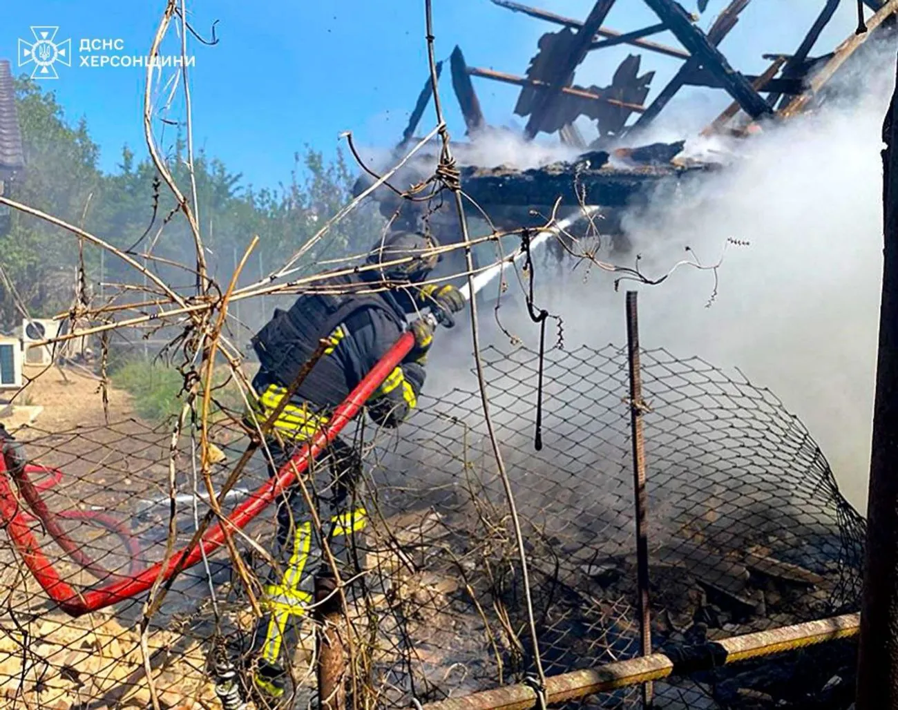 В результате вражеских обстрелов в Херсоне возникло три пожара, ликвидированы ГСЧС. Один человек погиб, двое получили ранения, горел дом, авто и хозяйственные постройки.