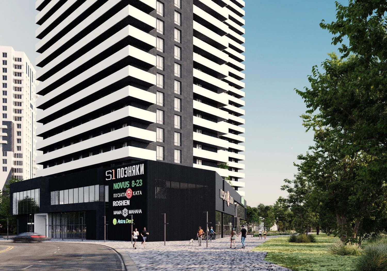 S1 Позняки — 24-этажный дом с четким зонированием. Первые два этажа отведены под более 7 000 м² коммерческих помещений, 3–24 этажи — 756 апартаментов для аренды. Около 80% фонда составляют однокомнатные квартиры и студии площадью около 35 м². Апартаменты передаются инвесторам в формате white box, что позволяет сразу переходить к меблировке и запуску в аренду. Операционное управление будет обеспечивать собственная компания по управлению доходной недвижимостью S1 Property.