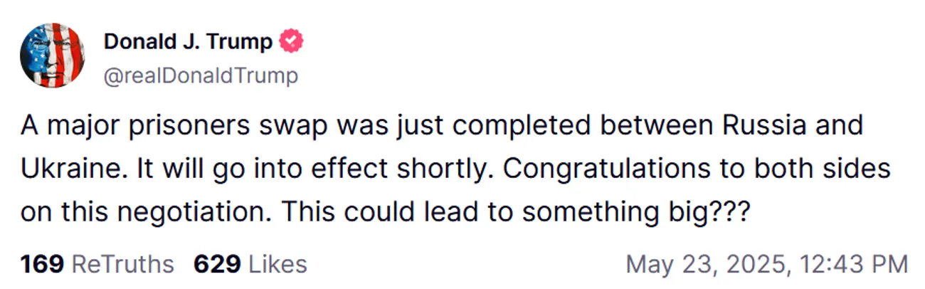 Дональд Трамп сообщил об успешном обмене пленными между россией и Украиной.