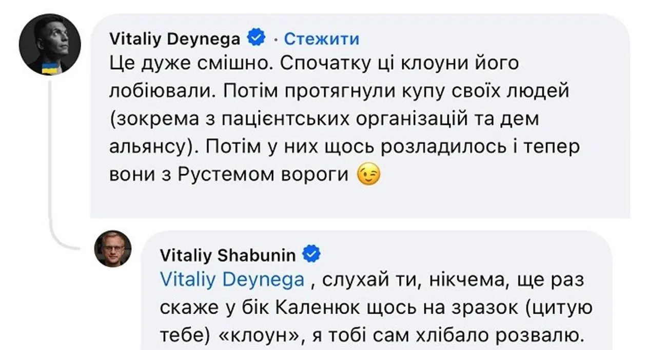 "Это очень смешно. Сначала эти клоуны его лоббировали. Затем протащили кучу своих людей (в том числе из пациентских организаций и Демальянса). Потом у них что-то разладилось, и теперь они с Рустемом враги", — отметил Дейнега.
