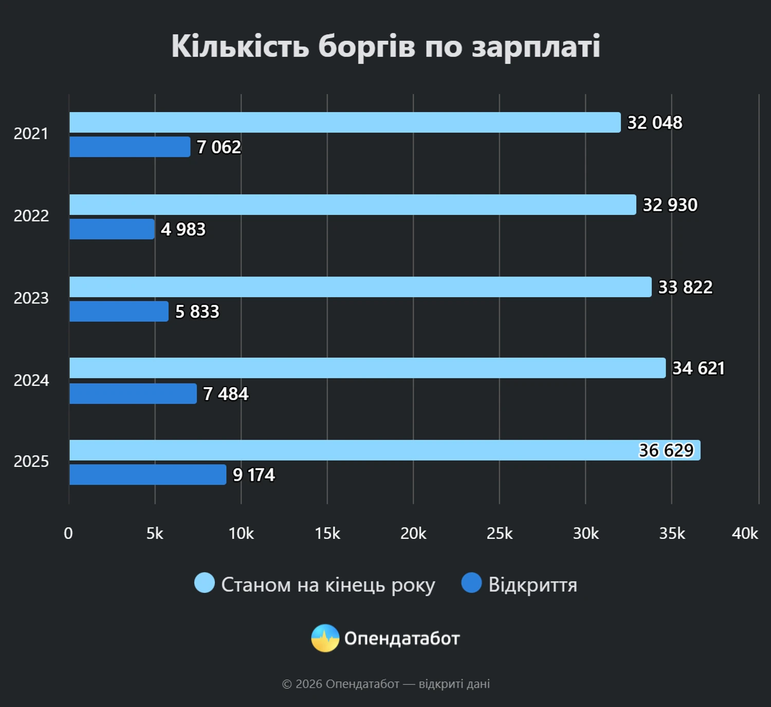С начала 2026 года в Украине по данным Единого реестра должников было зафиксировано более 36,6 тысячи долгов по заработной плате. Об этом сообщает УНН со ссылкой на Opendadbot.