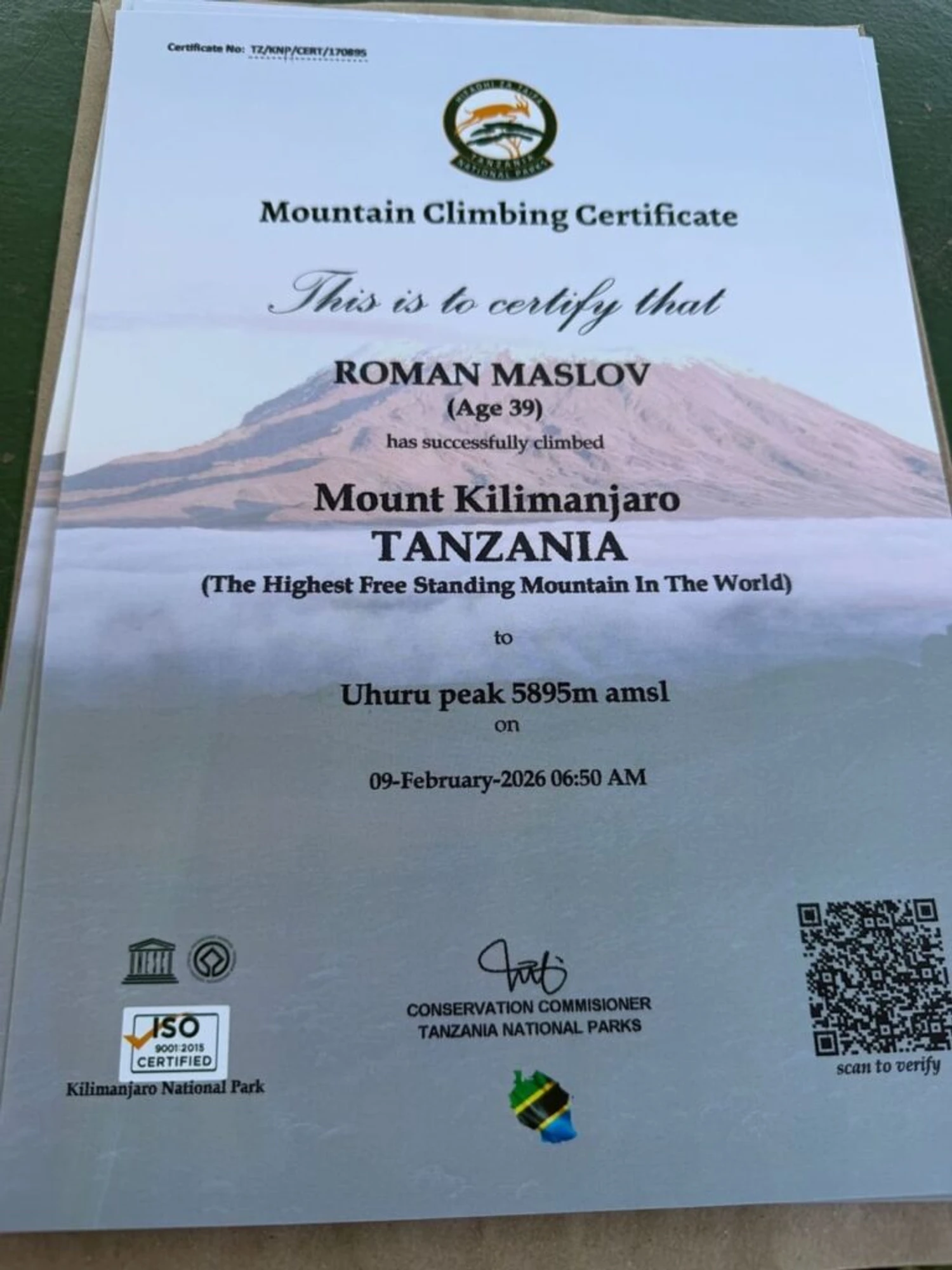 Украинский предприниматель и атлет Роман Маслов самостоятельно развернул самый большой национальный флаг на пике Ухуру горы Килиманджаро. Полотно размером 3х4,5 м было развернуто на высоте 5895 метров.