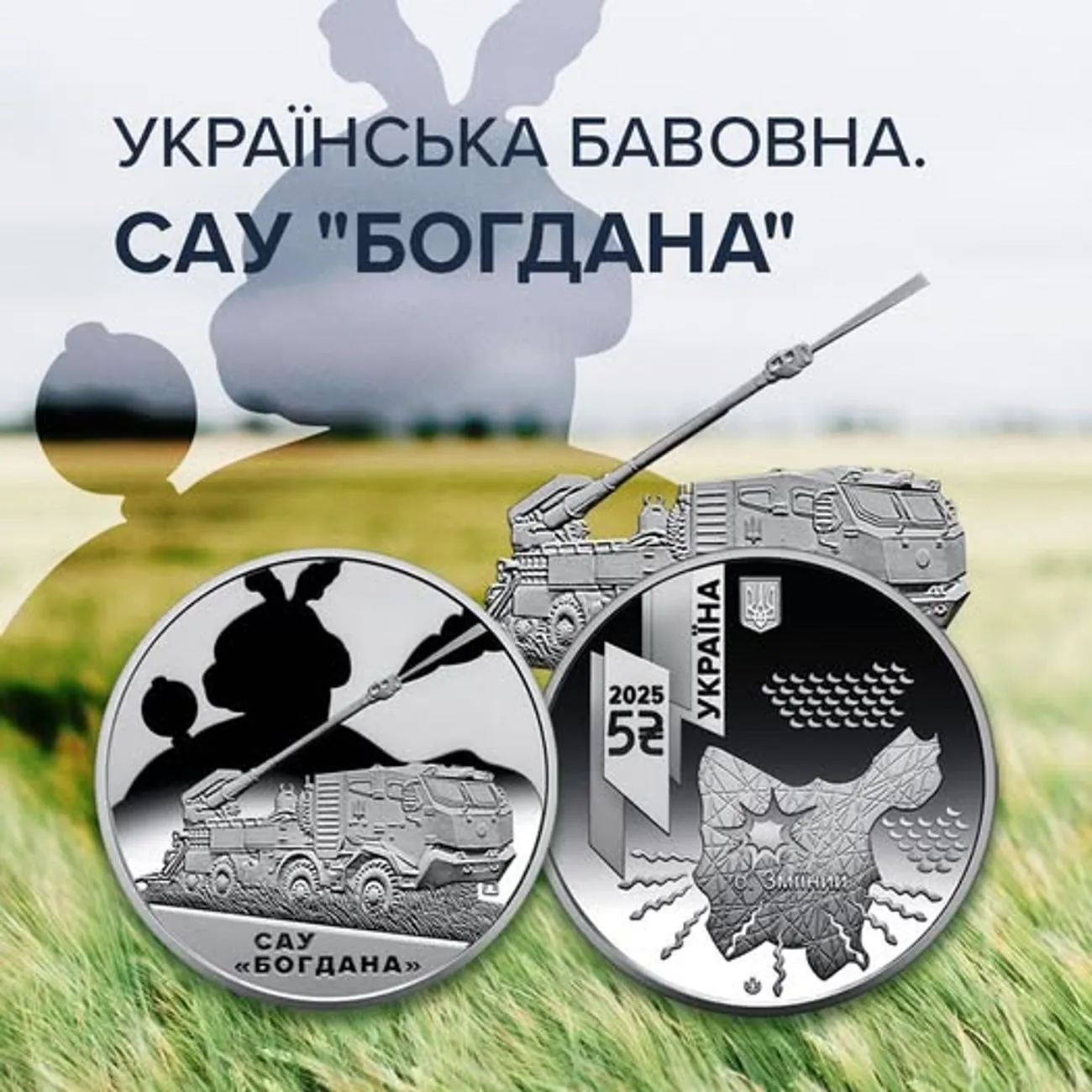 Монета посвящена самоходной артиллерийской установке (САУ) "Богдана", которая сейчас является одним из ключевых элементов артиллерийского потенциала Вооруженных Сил Украины.