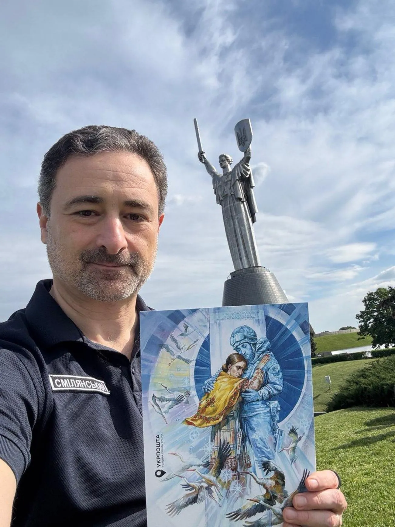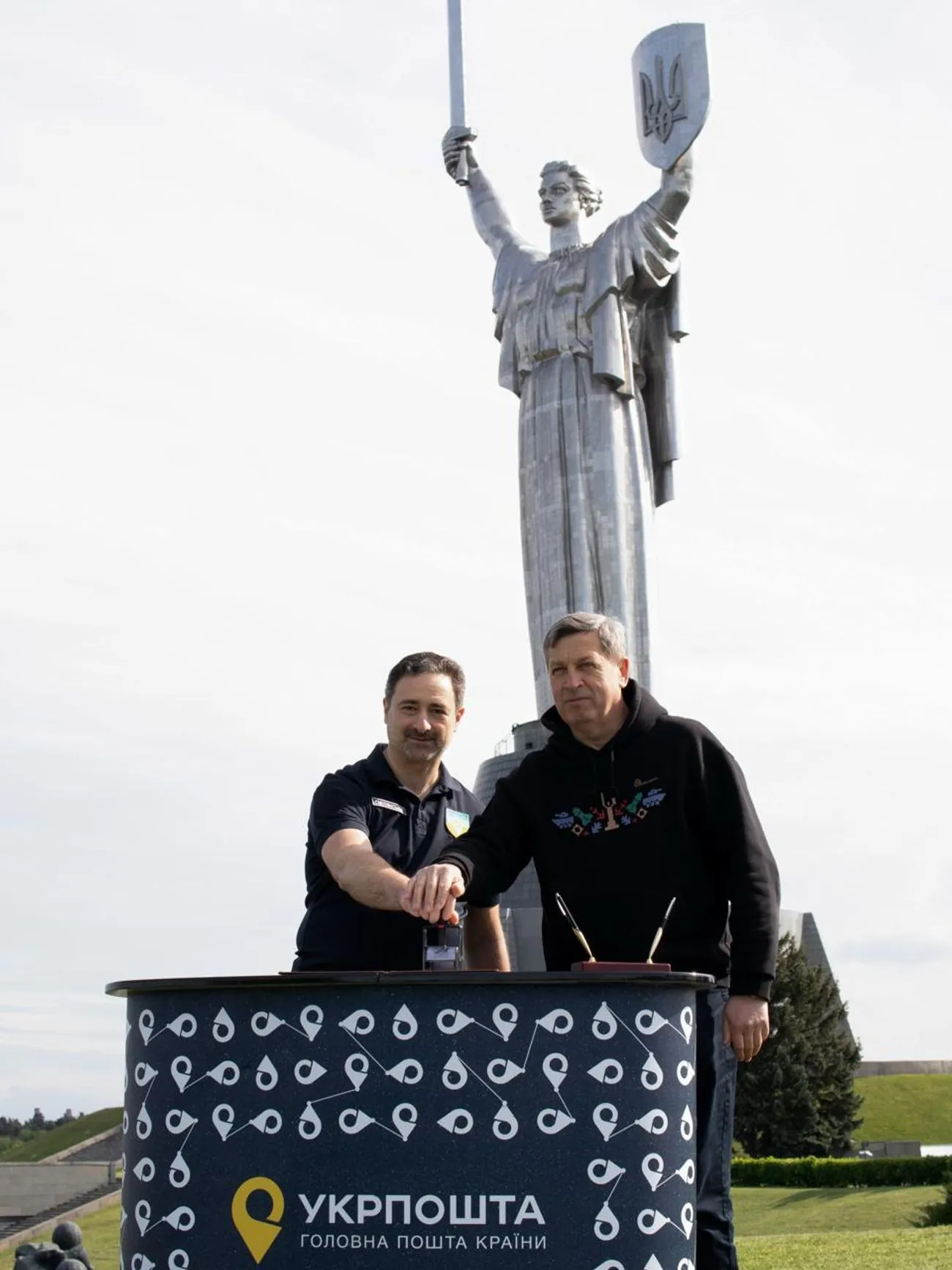 Смелянский добавил, что новую марку запустили вместе с директором Музея истории Украины во Второй мировой войне Юрием Савчуком. Место для этого выбрали символическое - возле Родины-Матери, памятника, который стал визитной карточкой Украины. Его открыли ровно 44 года назад - 9 мая 1981 года.