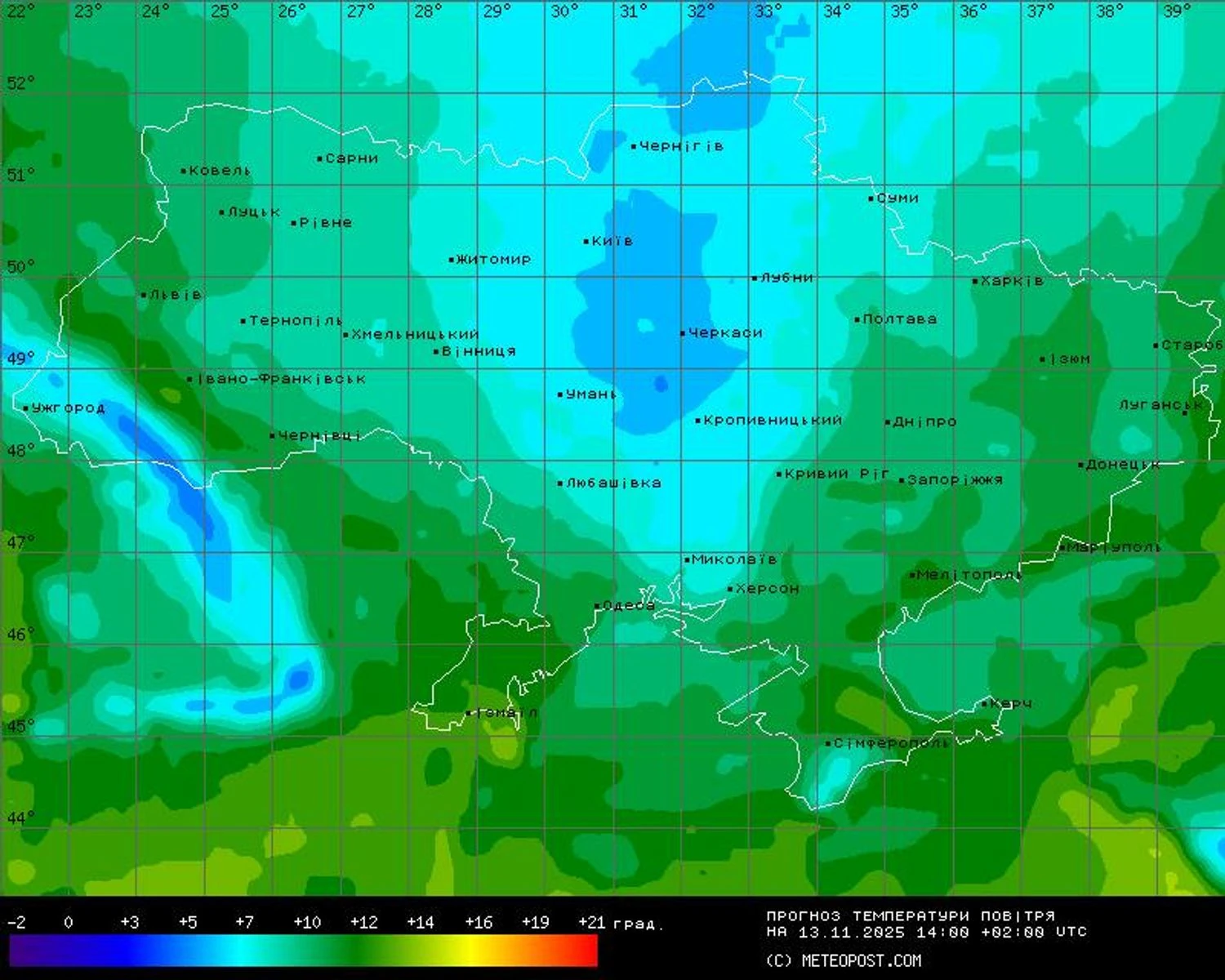 В четверг в Украине будет преобладать пасмурная погода с небольшими дождями, прояснения возможны только на западе. Теплее всего будет на юге и западе — до +13°C, в Киеве около +7°C. Передает УНН со ссылкой на страницу Натальи Диденко.