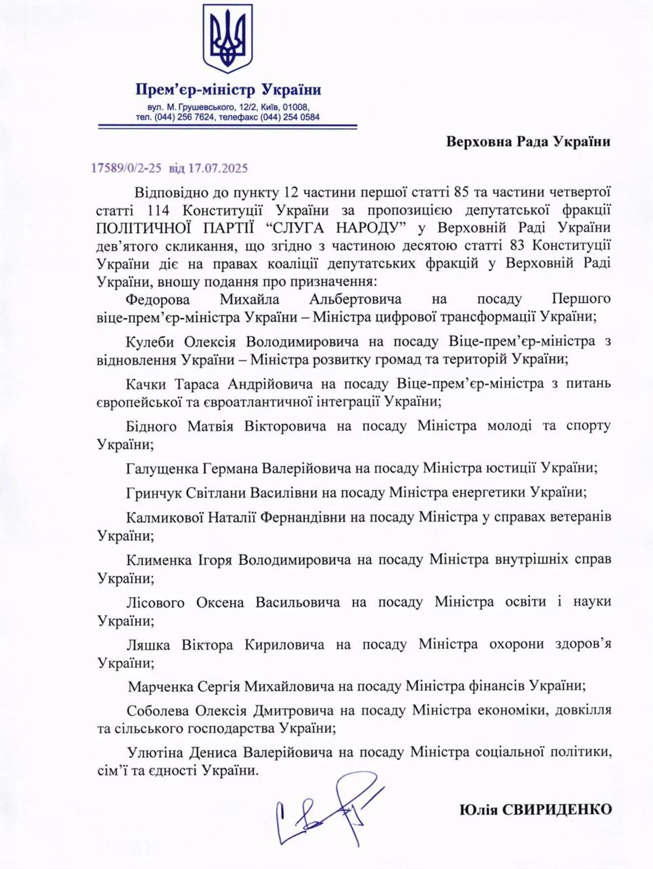 Рада назначила Свириденко новым премьер-министром17.07.25, 11:49 • 116087 просмотров