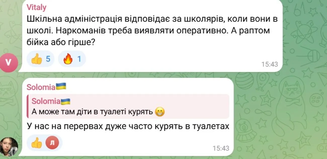 В частности, подписчики оправдывают такие действия школьной администрации тем, что ученики часто используют туалеты, как места курения, а также могут разрисовывать стены и наносить другой ущерб. Также они указывают, что подобные меры безопасности могут встретиться и в других учебных заведениях.