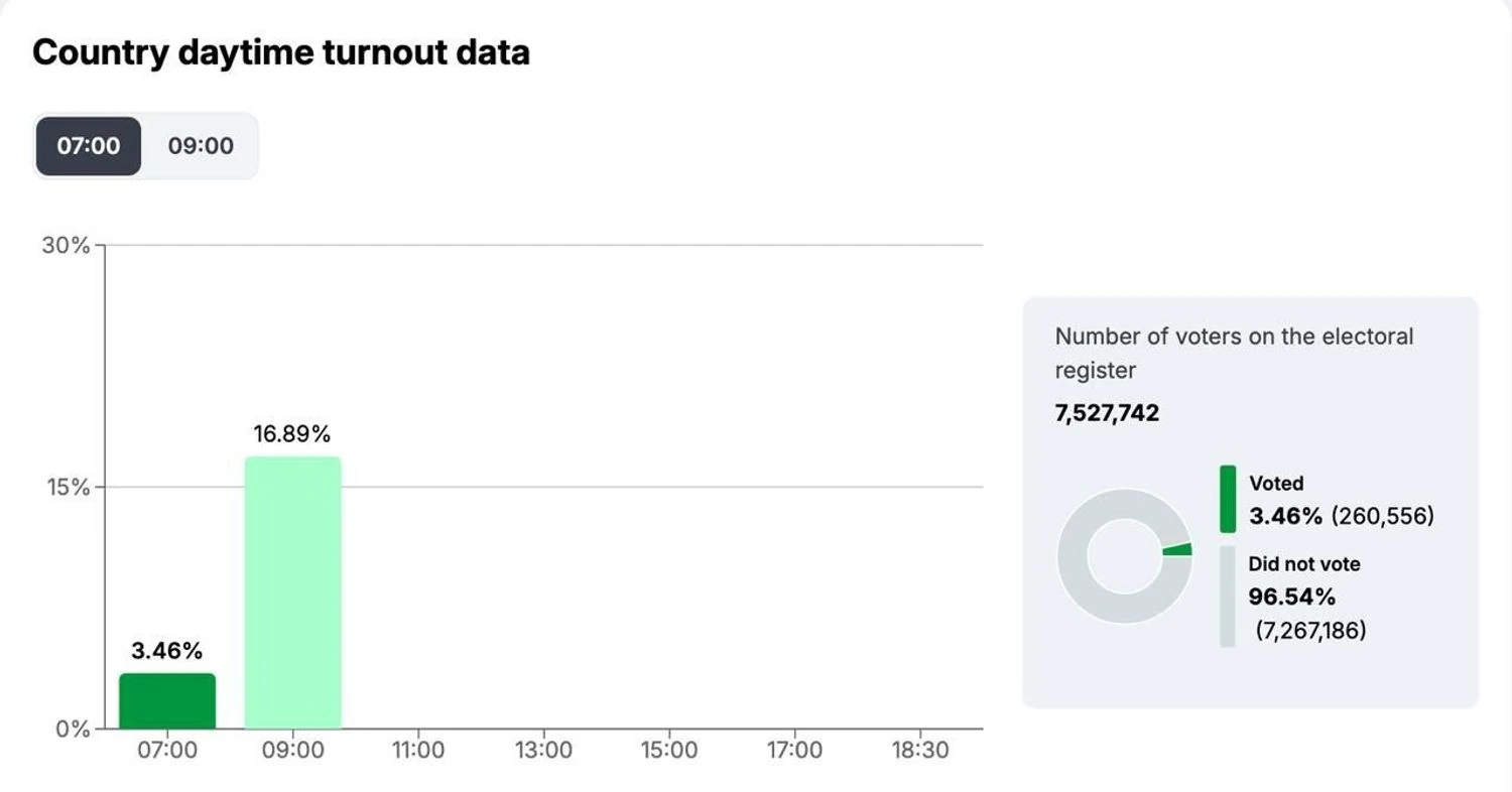 На парламентских выборах в Венгрии зафиксирована явка 16,89% в первые часы голосования. Виктор Орбан и Петер Мадьяр уже посетили избирательные участки.